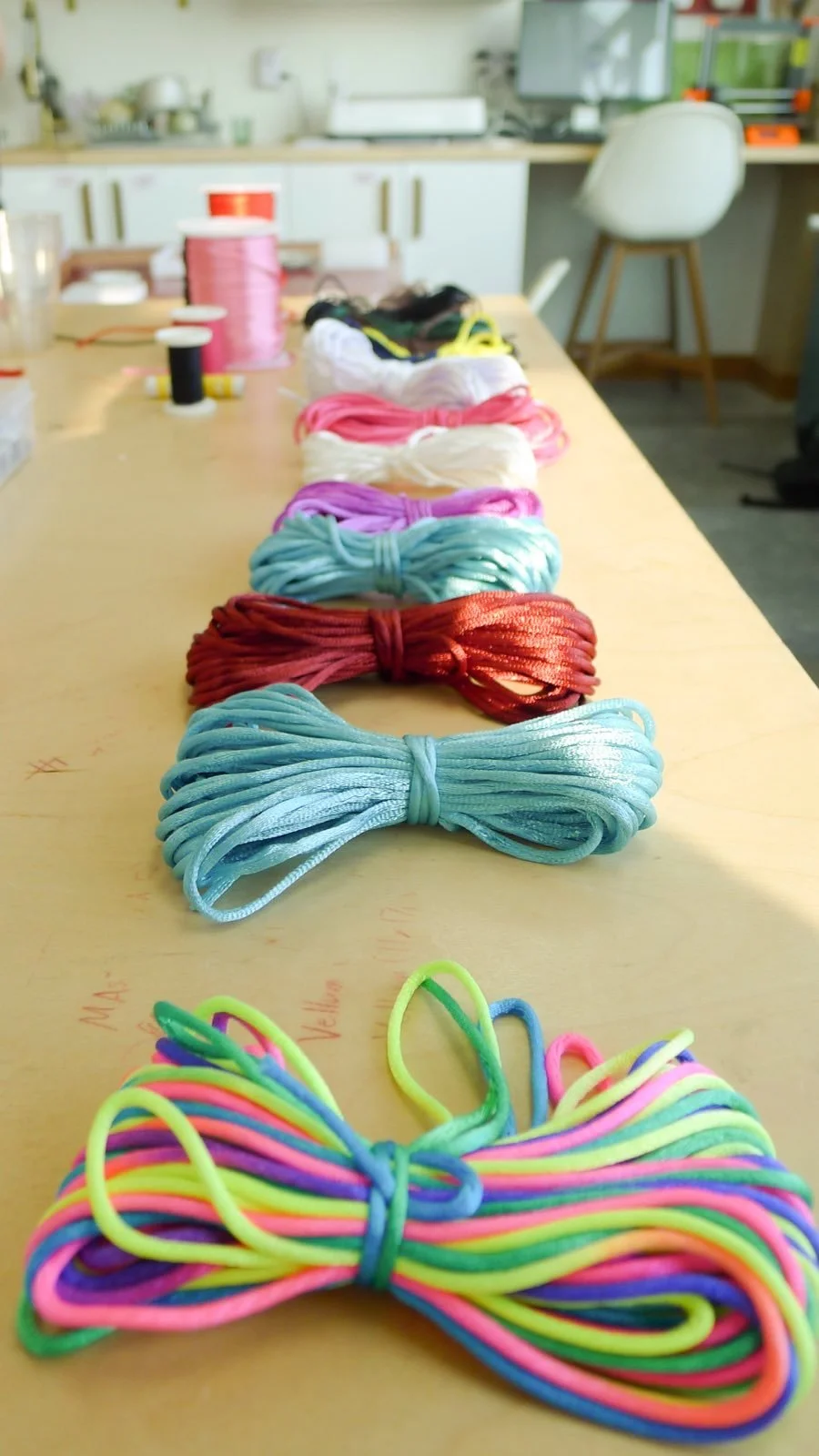 I teach Chinese knot tying to children as young as six, beginning with basic knots and bracelets before working up to more complex knots. I focus on building fine motor skills and confidence. Participants learn how to use plastic, wooden, and stone beads and discs.